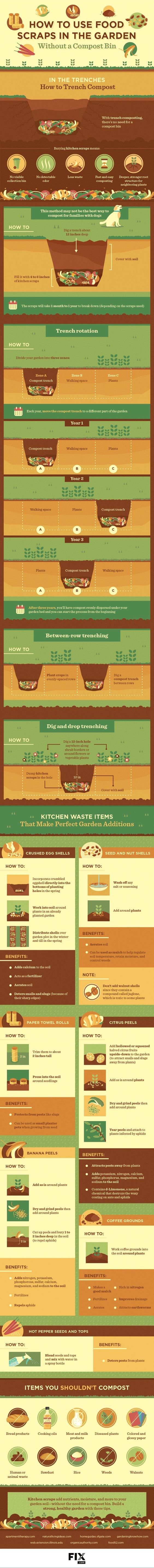 Composting, Gardening & Planting How To Use Food Scraps In The Garden fix.com This helpful infographic offers a variety of uses outside the norm for food scraps in the garden. Composting is just the beginning!